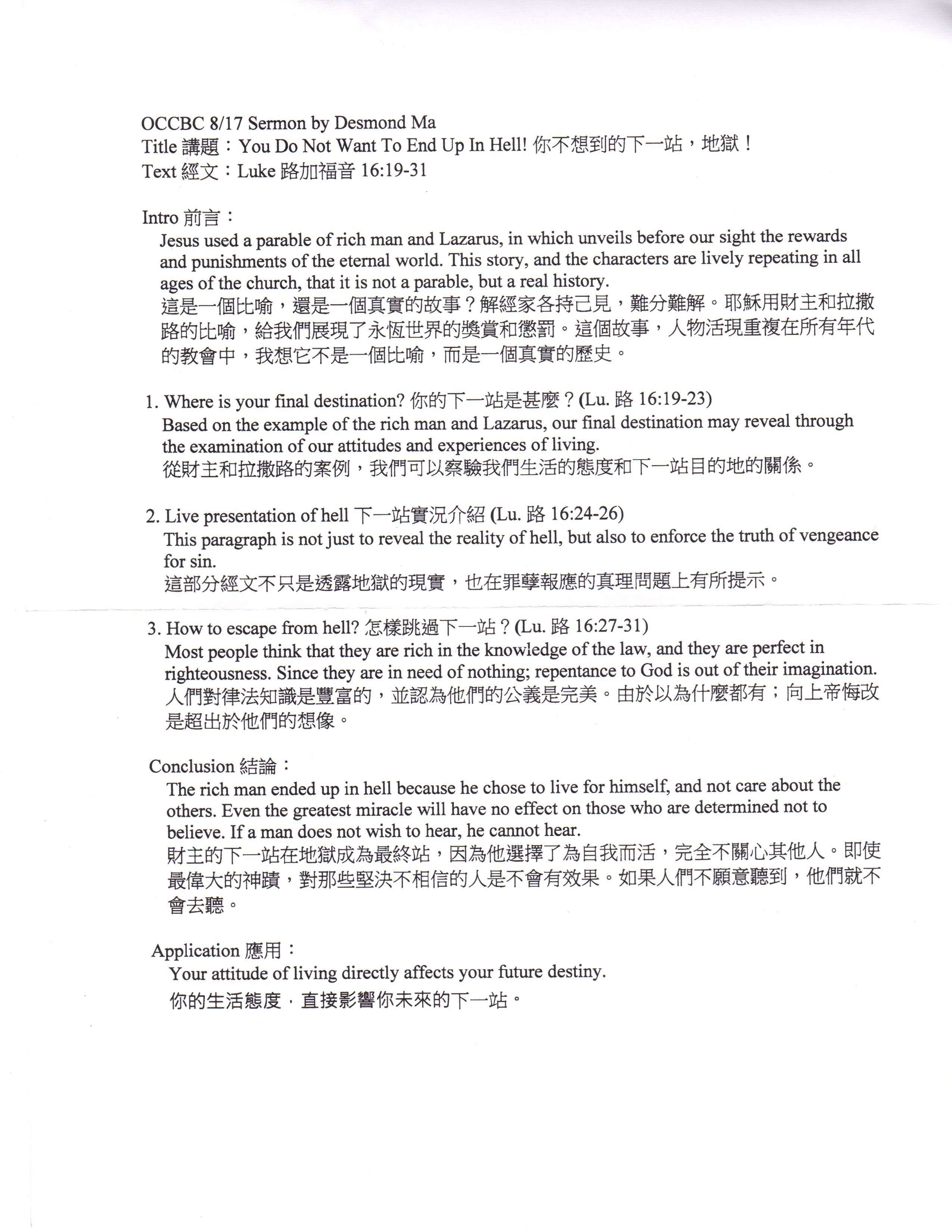 10/6/2013 | 林牧師 Pastor Lum | 生命的改變 Life Changed | 路Lk.19:1-10 |